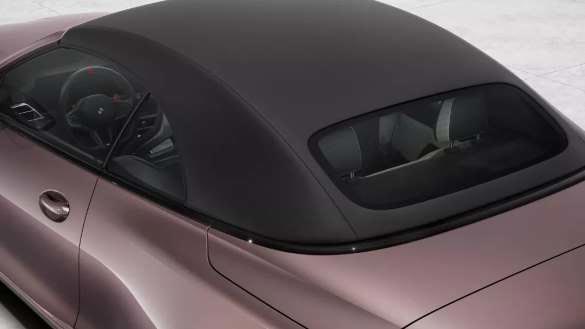 Dzięki wplecionym błyszczącym niciom, miękki dach w kolorze antracytowym pięknie połyskuje srebrzystymi refleksami w promieniach słońca. Jego naturalnie głęboki, ciemny odcień doskonale współgra z każdym kolorem nadwozia, dodając pojazdowi elegancji i wyjątkowego charakteru.